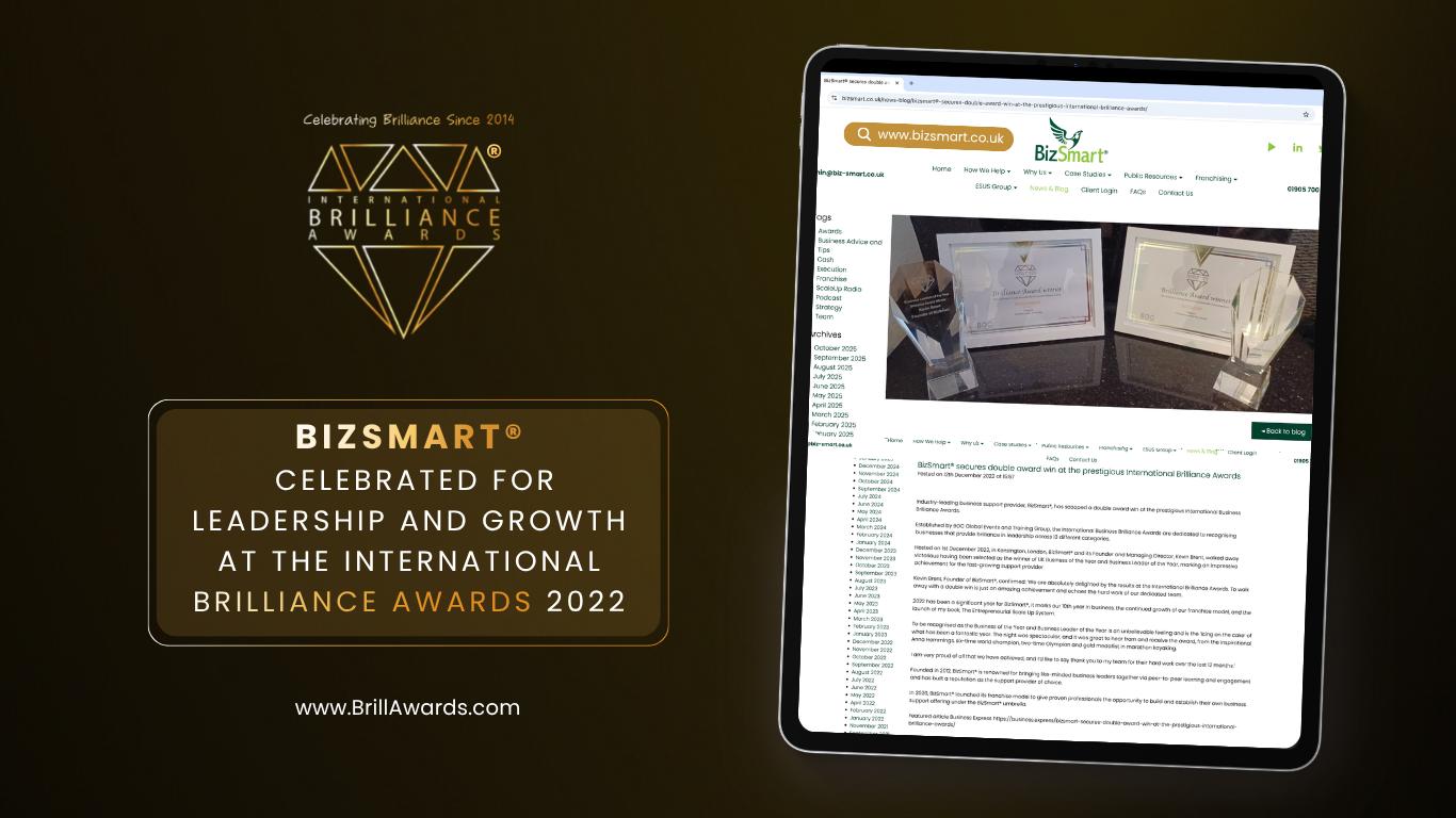 Industry-leading business support provider BizSmart® has achieved significant recognition at the International Brilliance Awards™, securing a double victory for its strategic impact and leadership. Announced in London, the company was named “UK Business of the Year,” while its founder, Kevin Brent, received the “Business Leader of the Year” award. These accolades highlight organisations and individuals who deliver exceptional results through clear vision and a commitment to sustainable growth.
